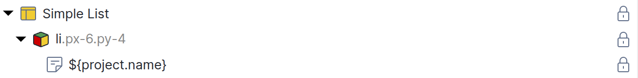 The examples above show complete HTML markup as you would write it in a Template element. For regular HTML elements like Div or Link, you enter only the expression (e.g., /projects/${project.id}) in the attribute field in the properties panel.